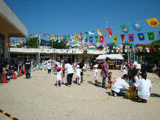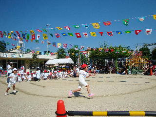 10月2日はさわやかな秋晴れとなり保育園内の広場で、開催された運動会。